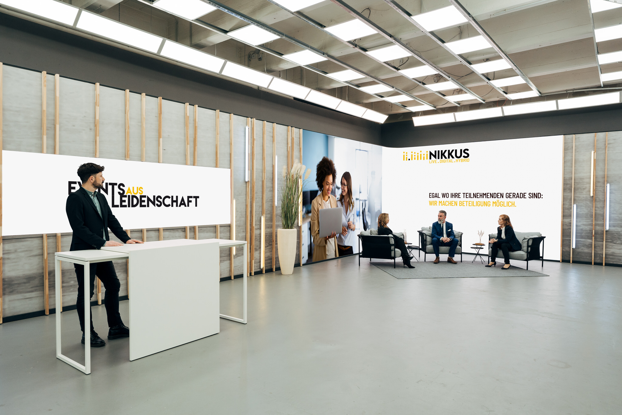 Entdecken Sie im NIKKUS Digital Studio Berlin eine große Vielfalt an Möglichkeiten, Ihr digitales Event zu einem eindrucksvollen Erlebnis für alle Beteiligten zu machen.